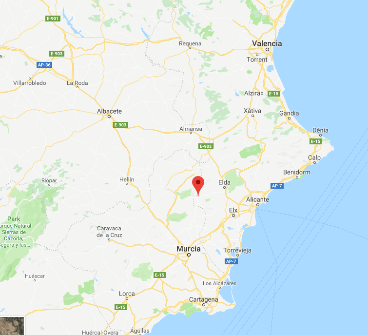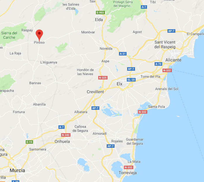 Pinoso = ten zuiden (onder) van de stad Valencia (Costa Blanca)